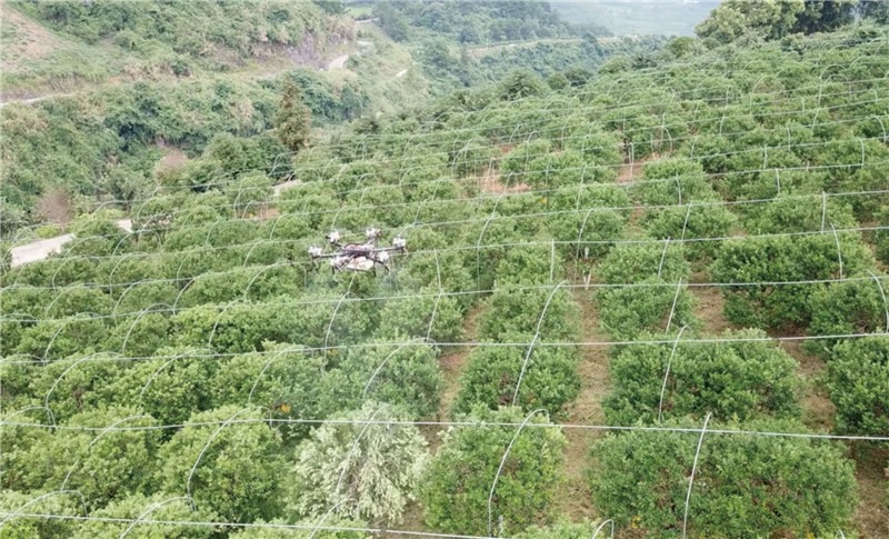 ??這種難度很大一部分源于果樹的種植環境:在南方,柑橘、臍橙、龍眼等經濟作物,通常種植在丘陵地帶沿等高線開辟的果園中,地形起伏很大。傳統的人工或半機械的噴霧防護,需要消耗巨大的時間和成本。想要使用無人機進行飛防,就必須解決飛行定位和載重的問題,以提高作業效率。