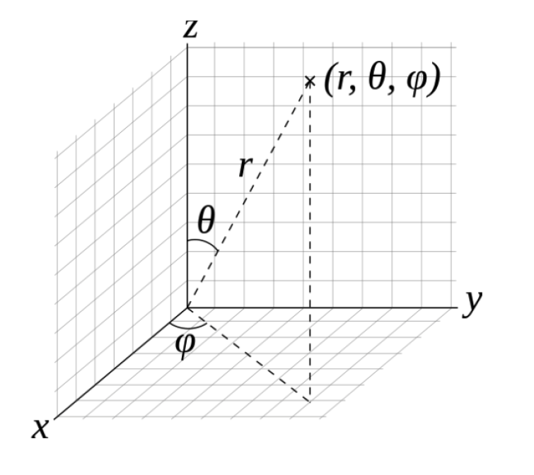 Fotokite 用作視覺(jué)助手。無(wú)人機(jī)的系繩角度傳感器和地面站的系繩卷軸編碼器使其能夠相對(duì)于其主地面機(jī)器人進(jìn)行定位和定位,而無(wú)需GPS信號(hào)和視覺(jué)里程計(jì)。Fotokite 的控制基于系繩角度、長(zhǎng)度和慣性測(cè)量。飛機(jī)位置控制使用系繩長(zhǎng)度 ,海拔 (系繩的垂直角度)和方位角 (系繩的水平角度)。飛機(jī)的位置可以用極坐標(biāo)系(圖 3)表示,并且很容易轉(zhuǎn)換到歐幾里得空間: