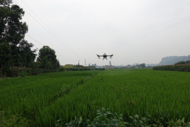 本次農用無人機免費施藥由市中區供銷社控股的樂山宏迪達農業服務有限公司完成。“村上工作人員找到我們,我們非常愿意提供這樣的社會化服務。”據公司負責人王平介紹,通常情況下,水稻、玉米需要在生長期內施藥三次,防治病蟲災害,這是第三階段施藥,水稻長至及膝高,相比之前,村民人工施藥難度更大,將耗費更多精力。