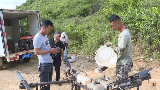 王海民:“我們用無人機(jī)來打藥,天氣不下雨,正常的話一個(gè)小時(shí)可以打藥30畝左右,一天可以打200畝左右。所以只要天不下雨,我們每天都按時(shí)按質(zhì)為種植戶打藥,減少老百姓的損失。”![]()