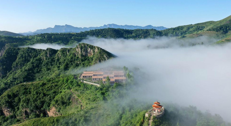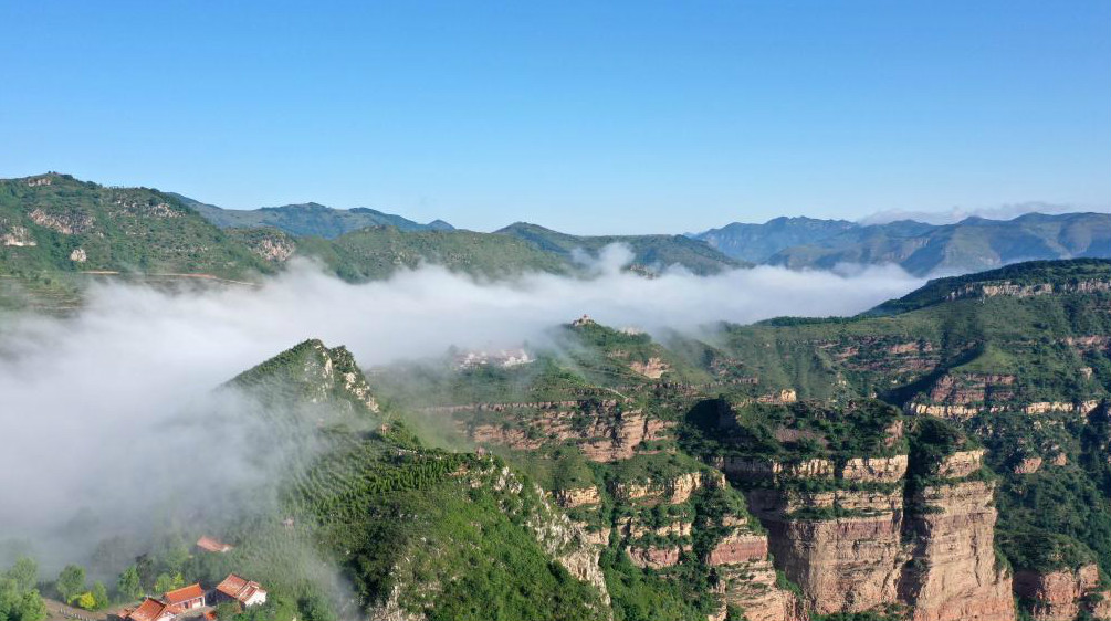 當日,位于太行山深處的河北省邢臺市天河山景區出現云海景觀,云霧在綠意盎然的峰林間飄蕩,山巒與云海交相輝映,美若畫卷。