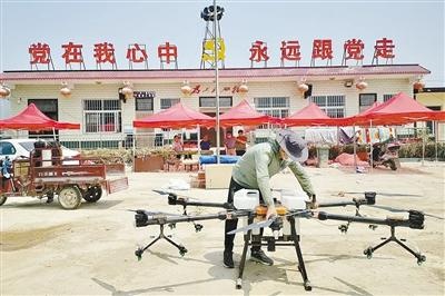 8月3日,志愿者正在調試無人機,對衛輝市頓坊店鄉進行消殺。