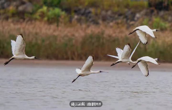 據介紹,黑臉琵鷺屬全球瀕危鳥類。“它們應該是飛往南方過冬的,因道人山良好的生態環境而暫時停留棲息于此。”丁鵬說,除了珍稀的黑臉琵鷺、白臉琵鷺,這里還有數千只骨頂雞 ,普通鸕鶿,斑嘴鴨等鳥類越冬,希望大家來這里打卡時不要打擾傷害它們。