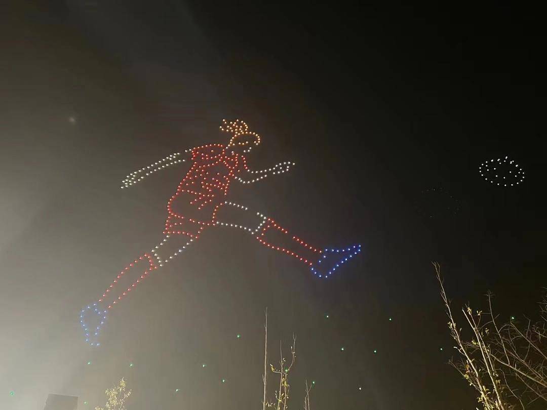 2月21日,游人拍攝西湖上空由無人機呈現的杭州亞運會吉祥物圖案。當日,杭州2022年第19屆亞運會迎來倒計時200天,浙江杭州西湖景區上演千架無人機主題表演。